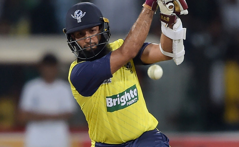 World XI batsman Hashim Amla plays a shot during the second Twenty20 international cricket match between the World XI and Pakistan at The Gaddafi Cricket Stadium in Lahore on September 13, 2017. / AFP PHOTO / AAMIR QURESHI January 28, 2018 940 × 580 CRICKET-PAK-WORLDXI